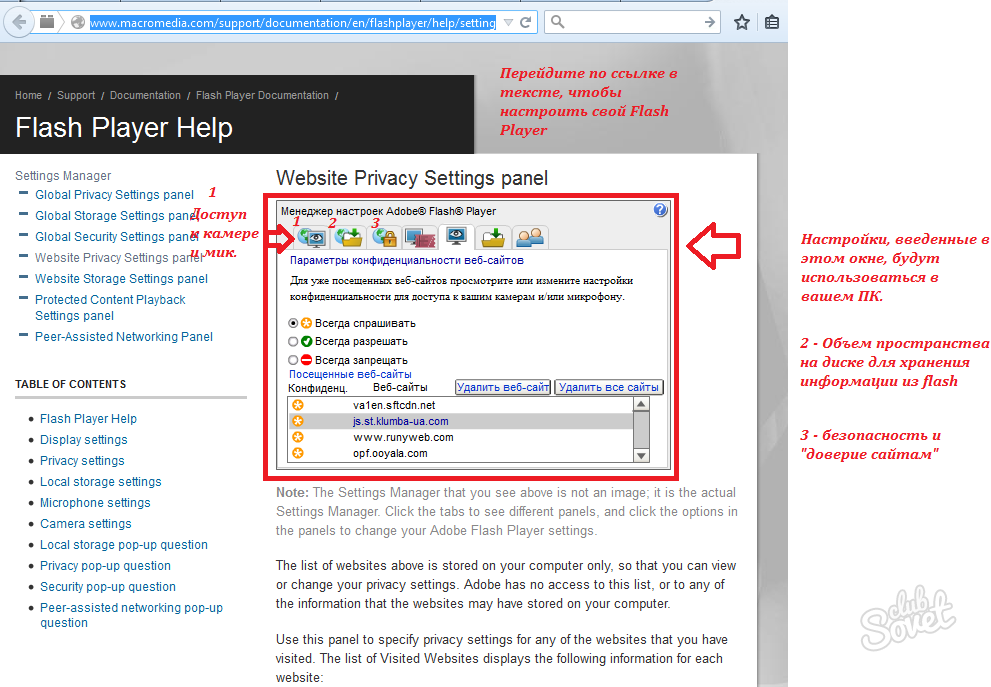 - С помощью этой утилиты можно настроить права доступа к камере, микрофону, а также кэш внутреннего хранилища Adobe Flash: