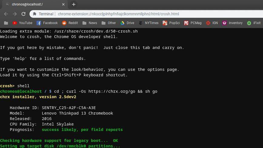 Перед использованием chrx вам необходимо включить режим разработчика, как мы это делали при установке Crouton. Вам также может понадобиться отключить защиту от записи и установить специальную прошивку на свой ноутбук, в зависимости от его процессора.
