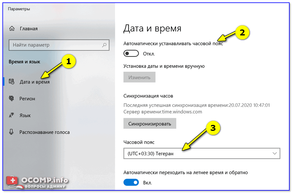 Если изменение часового пояса не помогло, есть смысл активировать автоматическую настройку путем синхронизации с сервисами Microsoft: