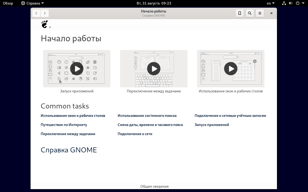 Оболочка рабочего стола GNOME также покажет советы по использованию интерфейса. Можете закрыть это окно, если знаете, как работать с чистой оболочкой.