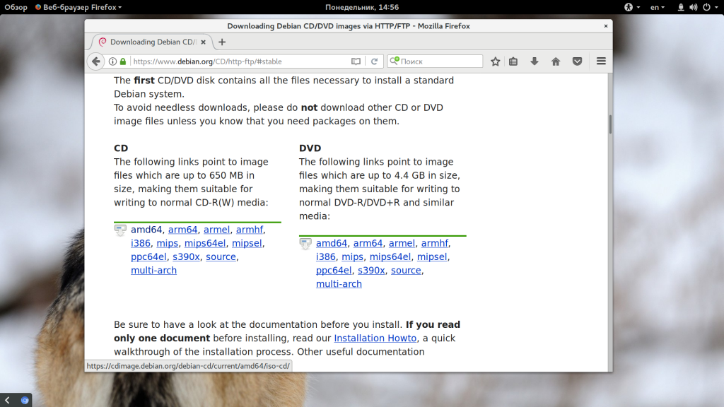 Затем останется только скачать нужные образы. Разработчики предоставляют три диска, на них есть все необходимые пакеты, но для установки будет достаточно только первого, все остальные пакеты в таком случае загрузятся через интернет.