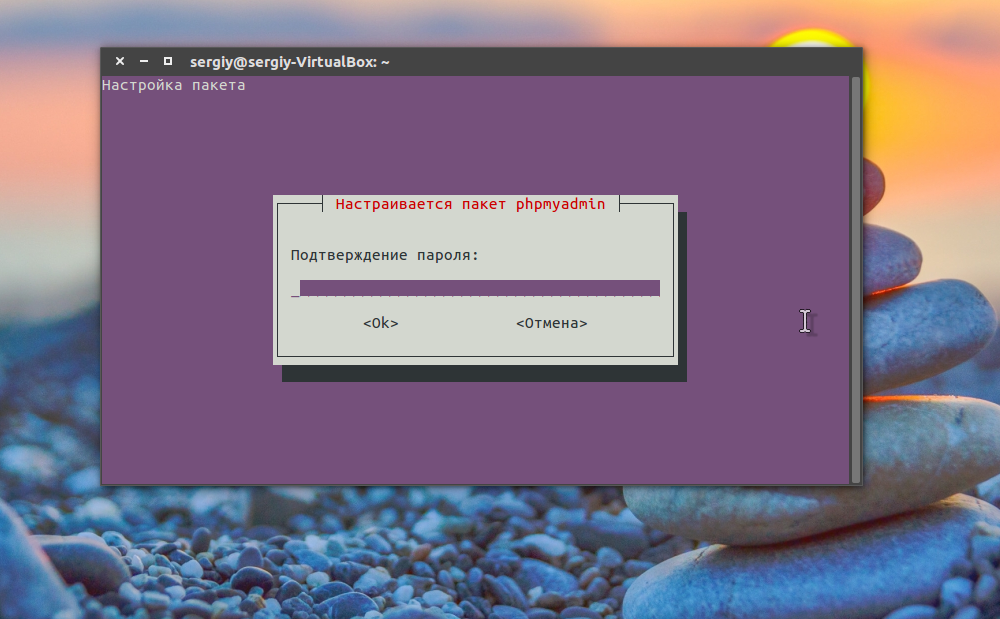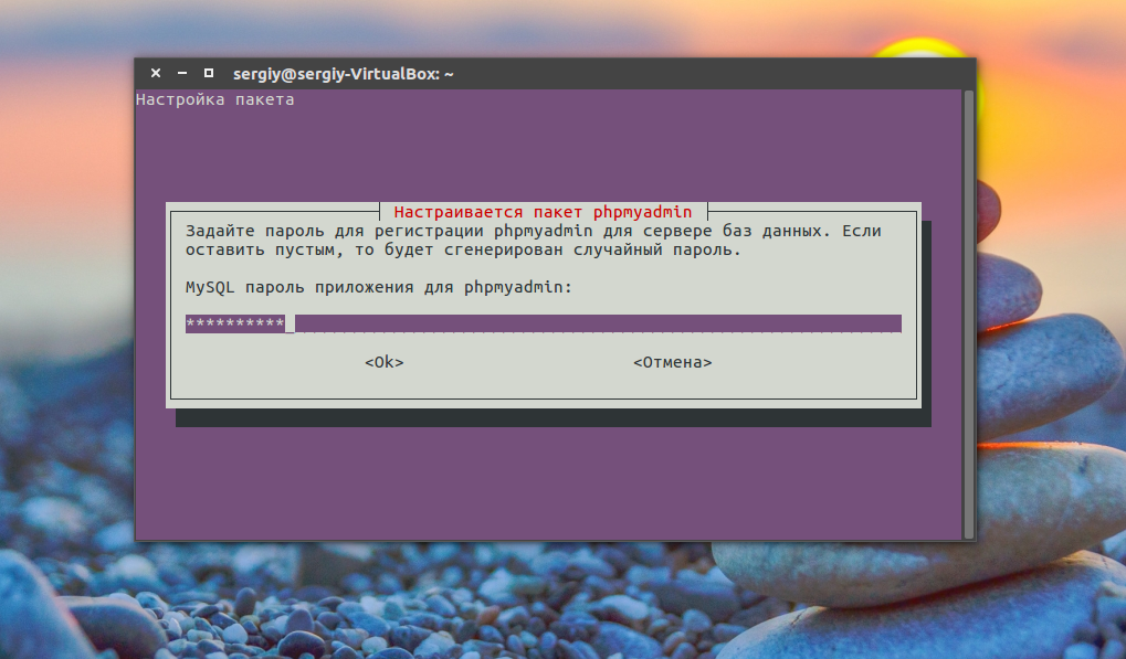 Вводим пароль, который будет использован для подключения Рhpadmin к базе данных: