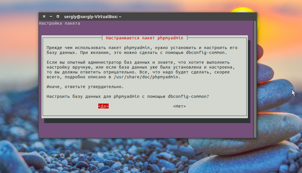 В следующем окне мастера нам предлагают настроить базу данных Рhpmyadmin, соглашаемся: