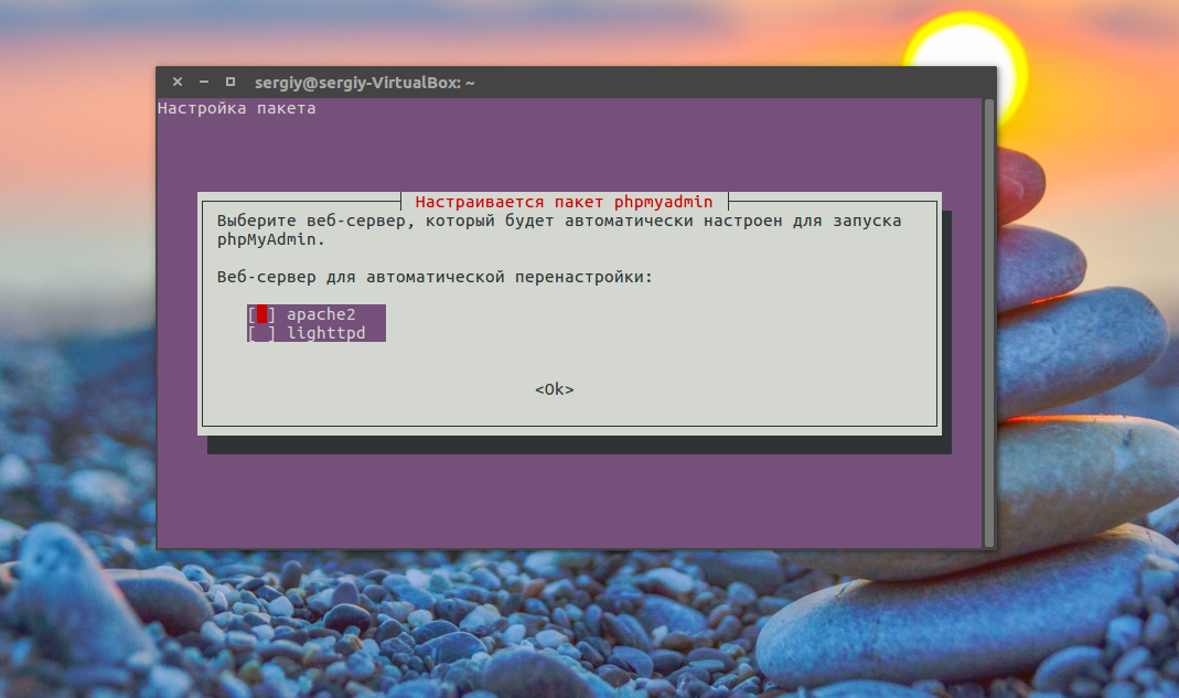Но тут уже во время установки потребуется немного конфигурации. Сначала нужно выбрать наш веб-сервер: