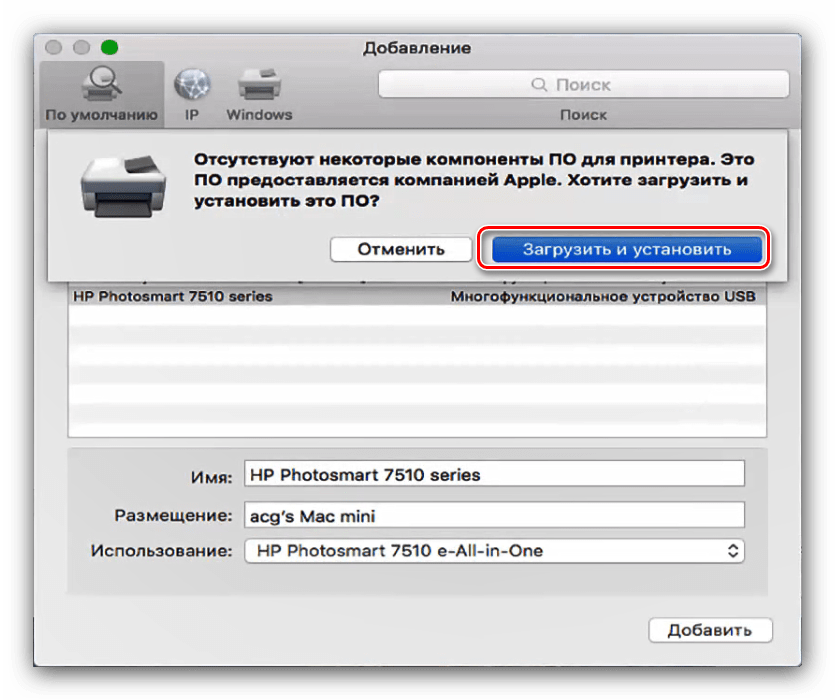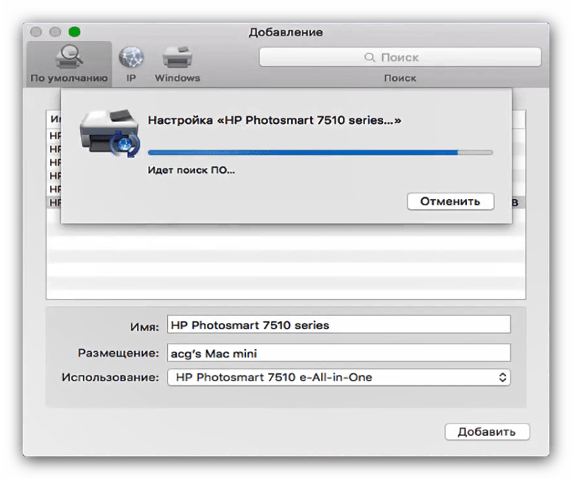 Принтер будет добавлен к вашему МакБуку и готов к эксплуатации.