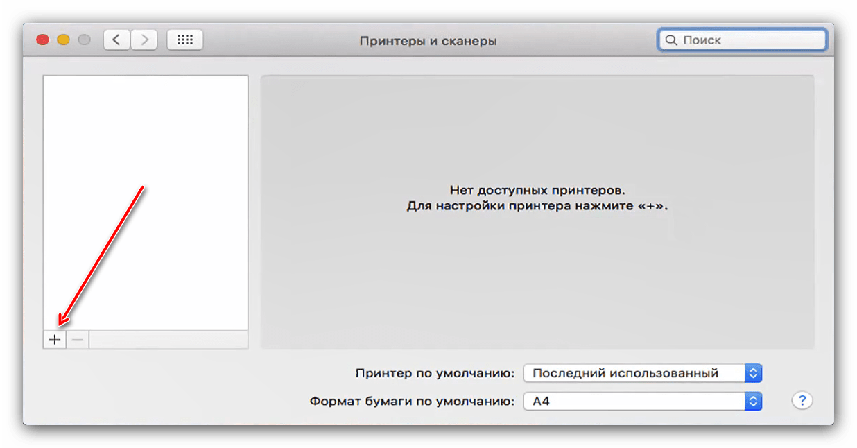 Откроется утилита работы с печатающим оборудованием. Для добавления нового принтера нажмите на кнопку «+».