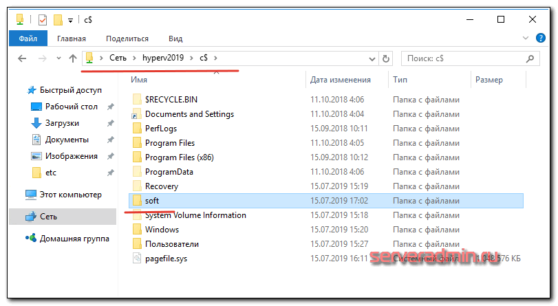 Мы почти закончили настройку Windows Hyper-V Server 2019 и готовы приступить к установке виртуальных машин. Надо только загрузить iso образ на гипервизор. Тут все очень просто. Открываем в проводнике на управляющей машине удаленный диск через стандартную возможность windows машин, создаем папку iso и загружаем нужный образ.