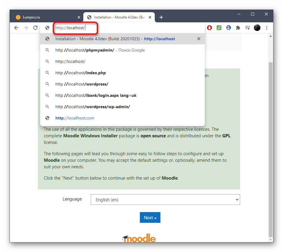 Откройте любой удобный веб-обозреватель, в котором перейдите по пути или другому адресу, установленному для локального сервера вручную.