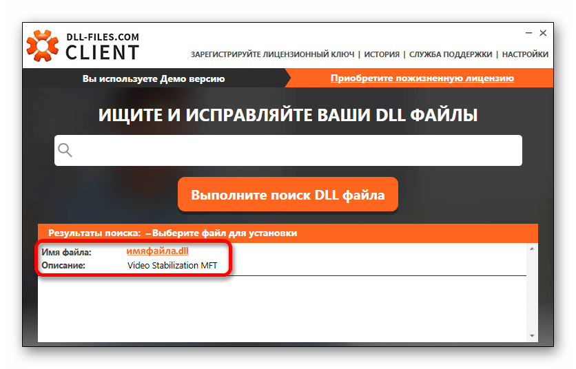 - Нажать на кнопку «Выполните поиск DLL файла».