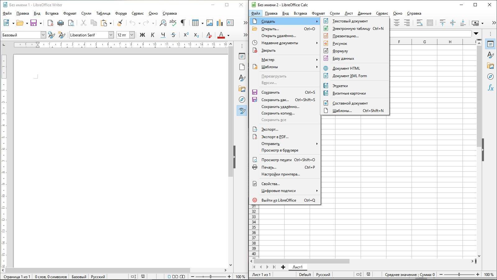 Интерфейс LibreOffice