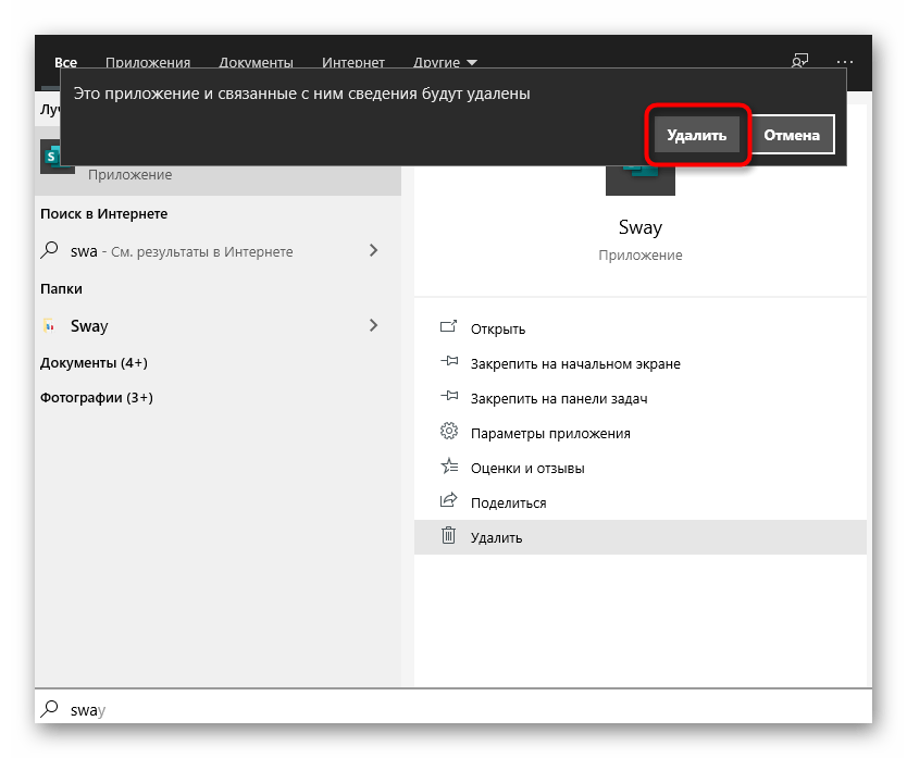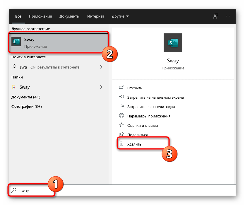 Самый простой вариант удаления программ из штатного магазина — их поиск в меню «Пуск» и использование кнопки деинсталляции. Особенно этот метод актуален в тех ситуациях, когда нужно избавиться всего от одного приложения, а не от нескольких.