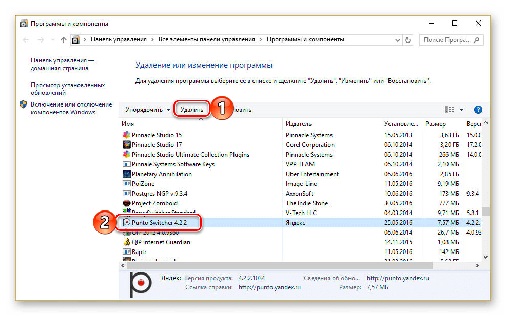 Если же необходимость в использовании Punto Switcher вовсе отпала, его можно и нужно полностью удалить, дабы не засорять операционную систему. Делается это точно так же, как и с любой другой программой.