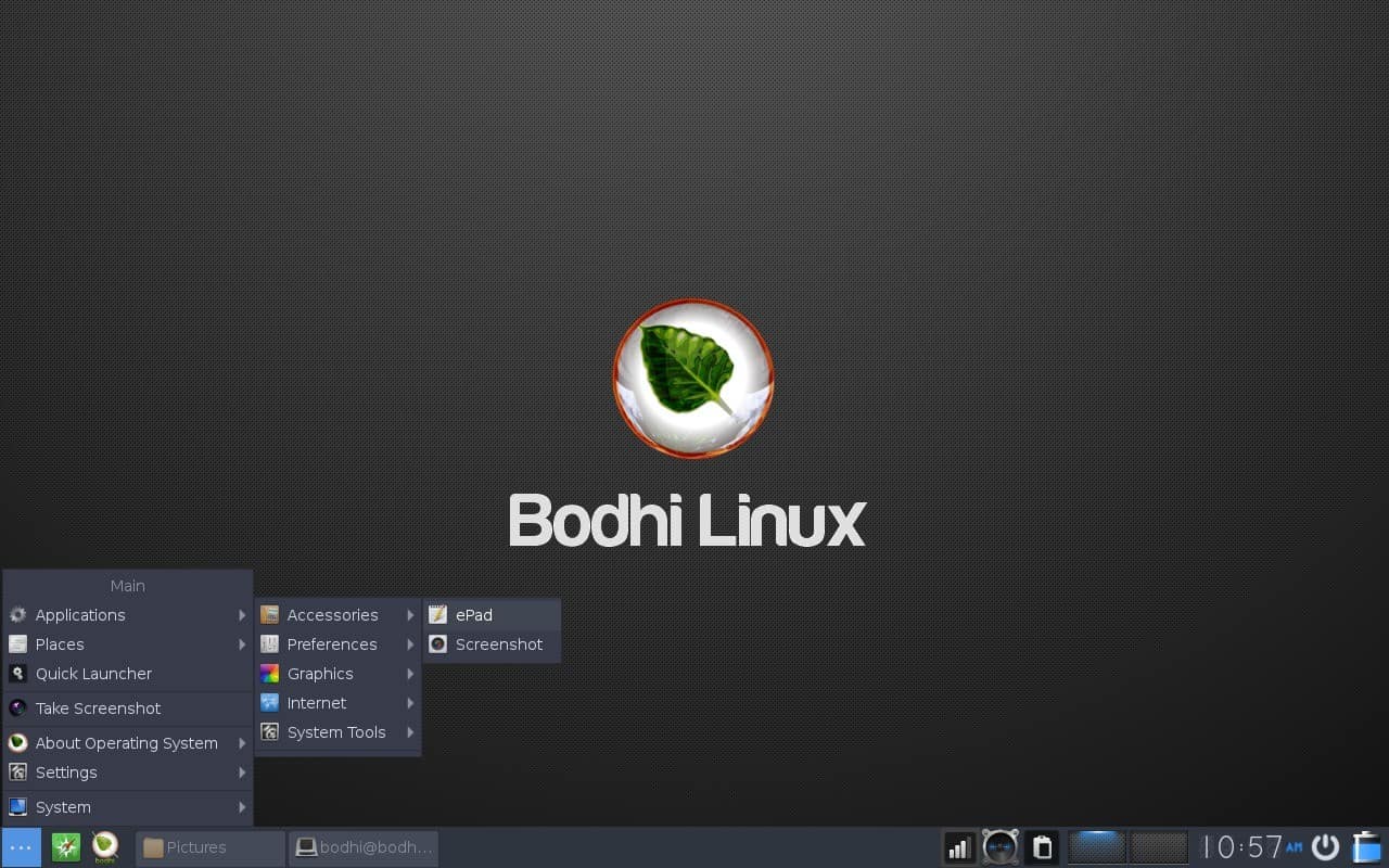 Bodhi Linux, является одним из легковесных, облегченных Linux дистрибутивов, который был выпущен в 2011 году. По данным сайта Bodhi Linux, он может работать на процессоре с частотой всего 500 МГц.