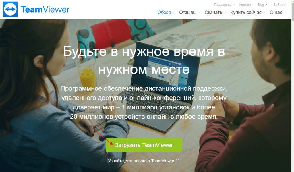 Итак, для того что бы скачать программу TeamViwer 11 вам необходимо ее загрузить с официального сайта, для этого перейдите по этой ссылке. В открывшимся окне просто щелкните по надписи «Загрузить TeamViwer»