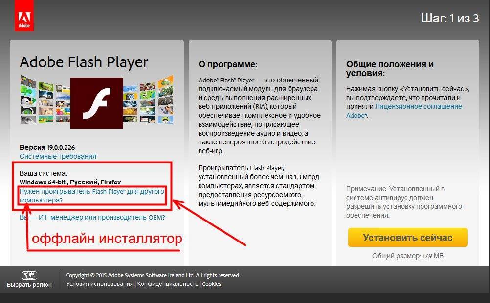 Что делать, если отсутствует доступ ко всемирной паутине? Загружаем оффлайн-установщик на сайте adobe.