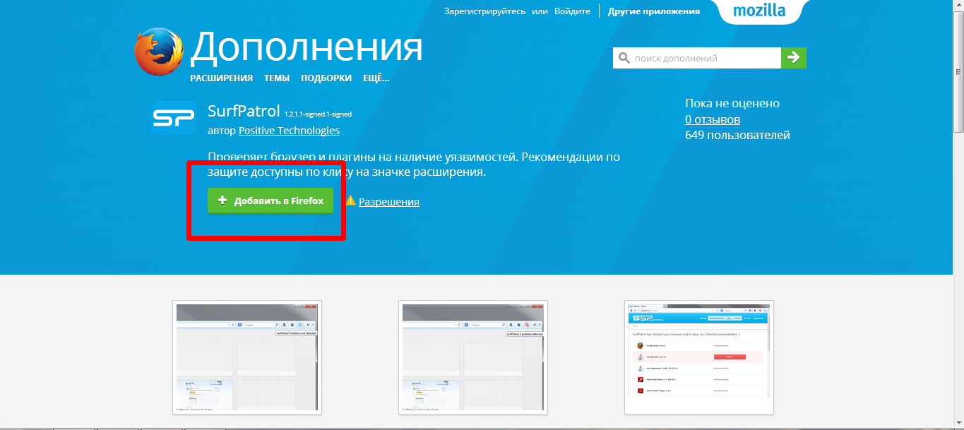 Вас перенаправит на сайт вашего браузера, где находятся плагины и дополнения. Например, для Firefox это будет выглядеть следующим образом: