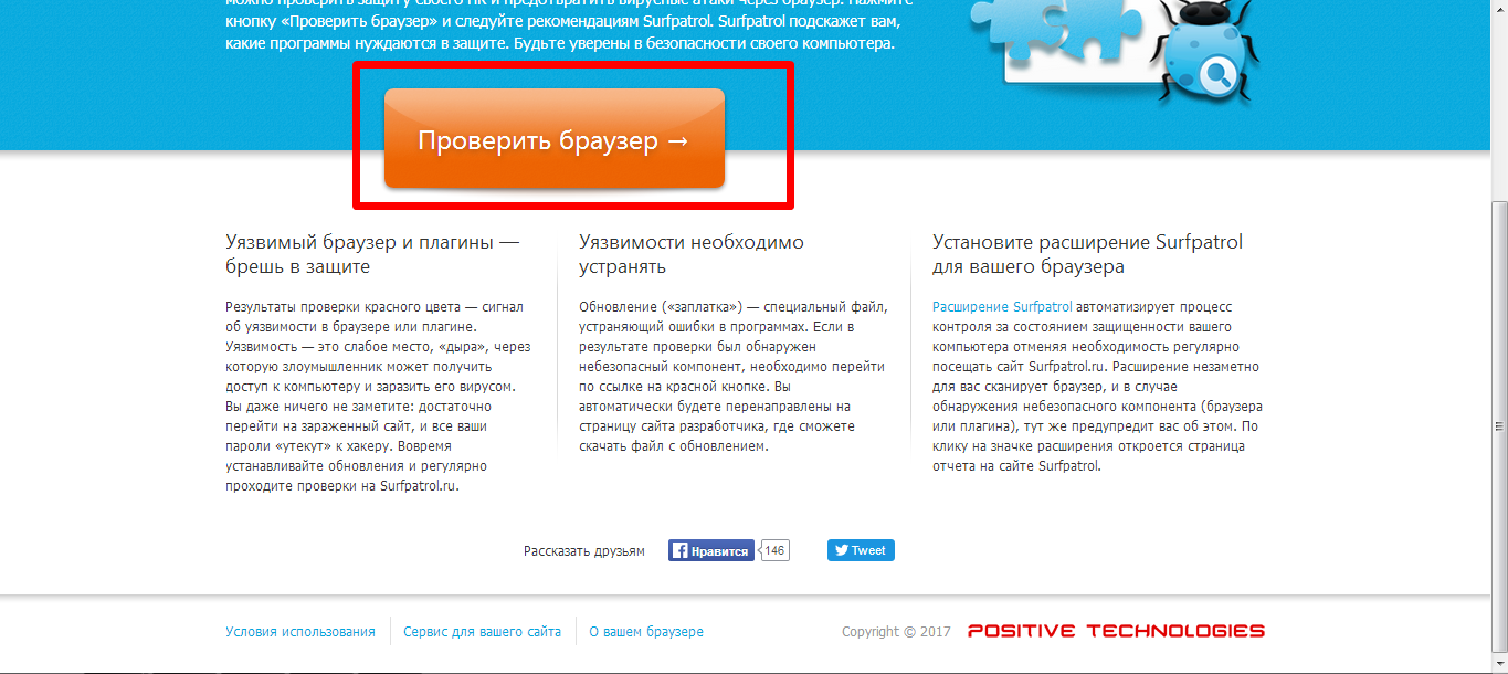 Затем необходимо нажать на кнопку «Проверить браузер».