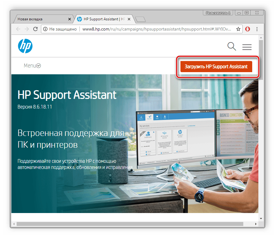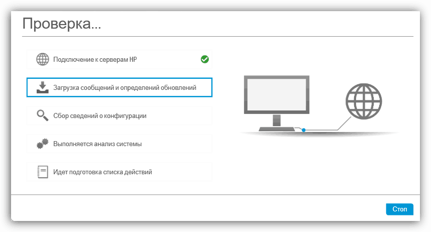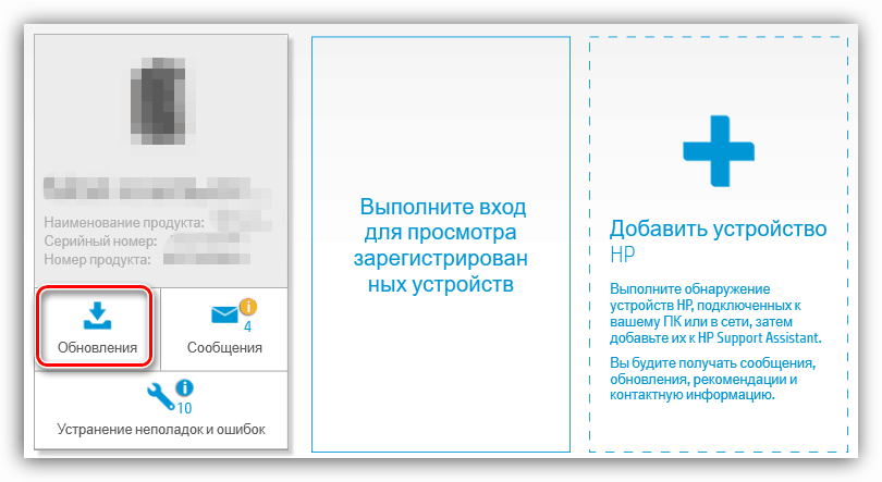 У компании HP есть свое ПО, которое пригодится всем обладателям устройств от этого производителя. Оно осуществляет сканирование через интернет, находит и инсталлирует обновления. Данная утилита поддерживает и работу с принтерами, поэтому загрузить драйверы с ее помощью можно так: