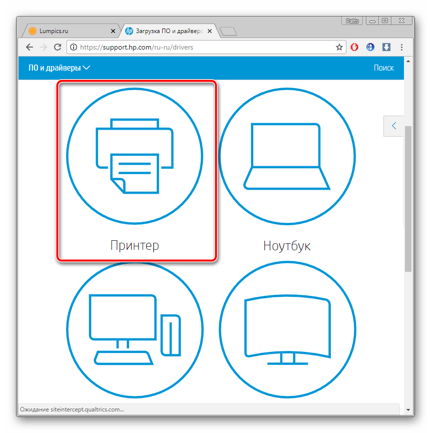 В открывшейся вкладке нужно указать тип своего оборудования, следовательно, следует нажать на картинку принтера.
