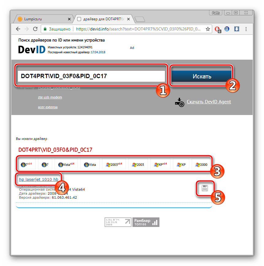 Каждому принтеру, как и другому периферийному или встроенному оборудованию, присваивается свой уникальный идентификатор, который задействуется при работе с операционной системой. Специальные сайты позволяют выполнить поиск драйверов по ID, а после чего загрузить их на компьютер. Уникальный код HP Laserjet 1010 выглядит следующим образом: