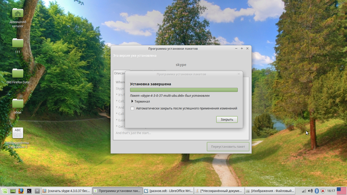 После этого вы так же можете закрыть GDebi и приступить к работе со Skype.