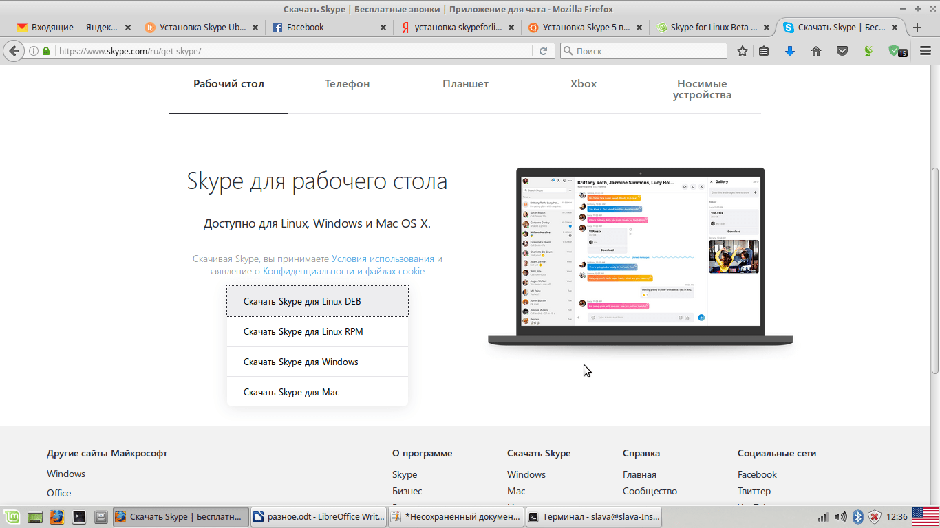 , которая находится по адресу https://web.skype.com , но это было не очень удобно. Позже, я нашел на форуме о Линукс, в теме про то, что не запускается Skype