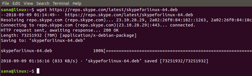$ wget https://repo.skype.com/latest/skypeforlinux-64.deb