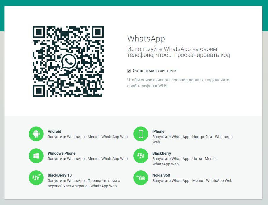 Заходим на сайт web.whatsapp.com через браузер, а затем сканируем появившийся код при помощи телефона
