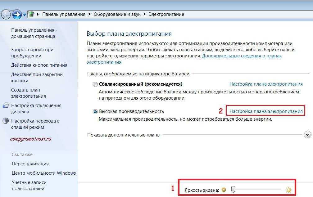 Как еще можно регулировать яркость ноутбука? После того, как Вы выберете один из планов электропитания: