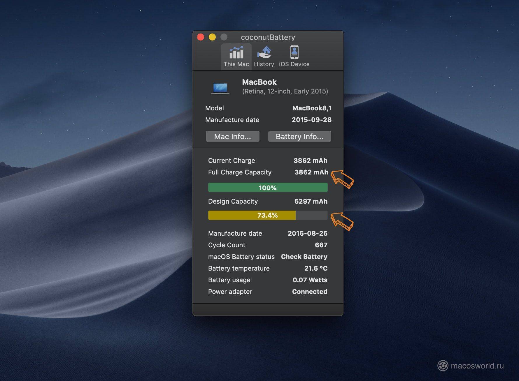 Посмотри всё инфо по аккумулятору прямо в OS X