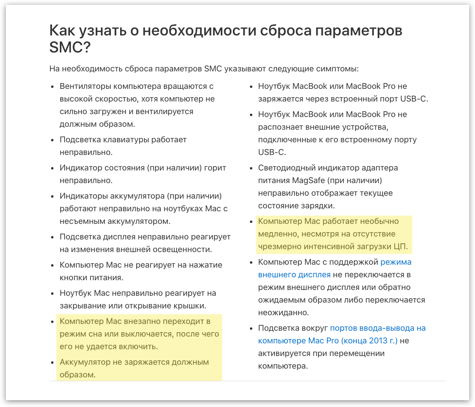 Алгоритм сброса SMC зависит от модели MacBook, но сводится к удержанию нескольких кнопок во время загрузки.