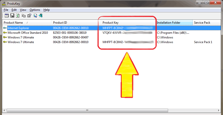 После открытия разархивированной папки запустите в работу утилиту ProduKey. exe. После этого на экране появится таблица, в которой будут указаны все ключи Microsoft, установленные на устройстве.
