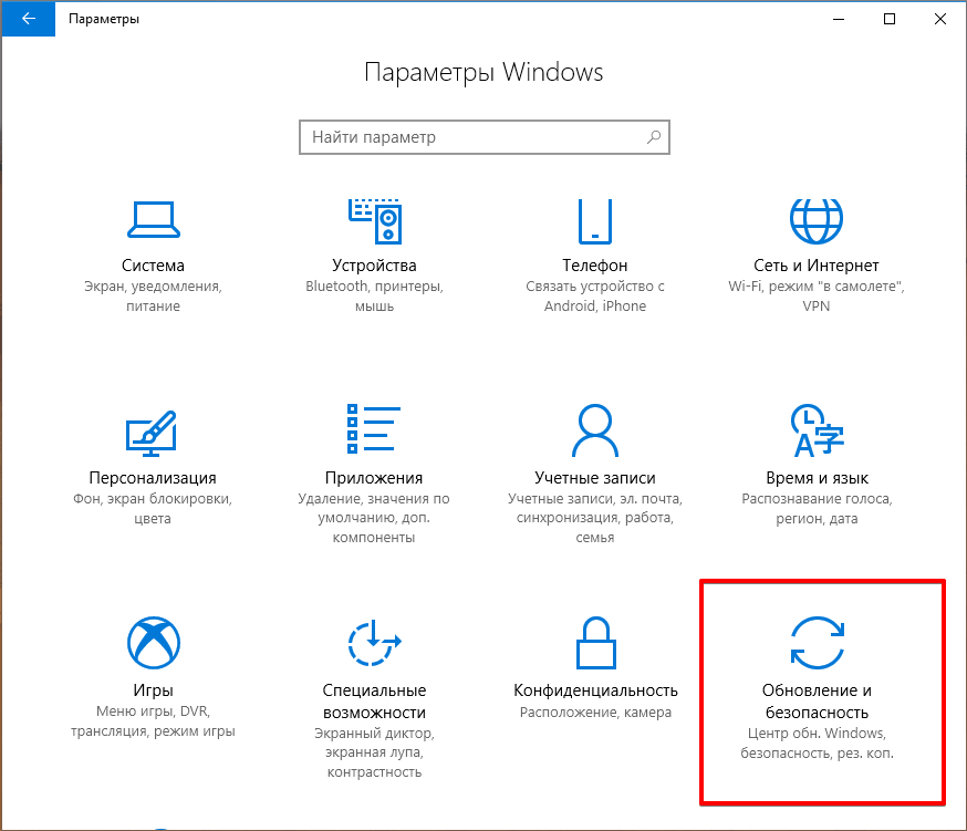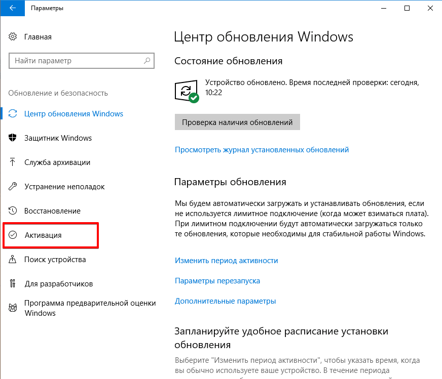 в открывшемся окне выбираем «Обновление и безопасность», затем — «Активация»,