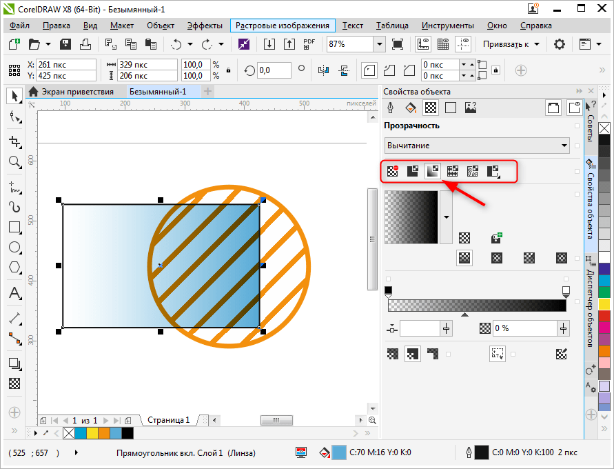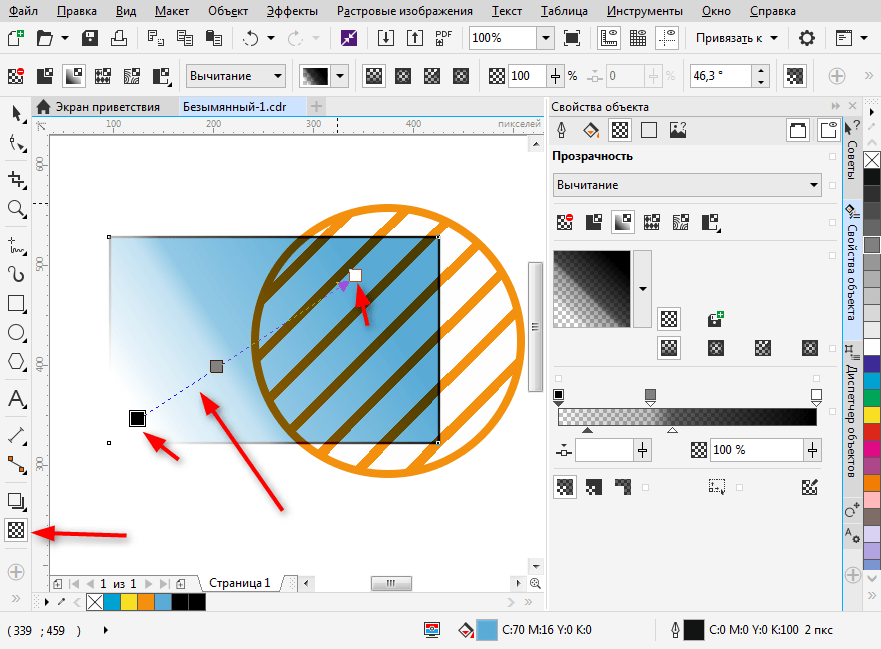 Интерактивная прозрачность в CorelDraw является одним из самых важных инструментов для достижения эффектов. При помощи этого инструмента можно создавать и изменять прозрачность объектов: однородную, переходную (градиентную) или текстурную.