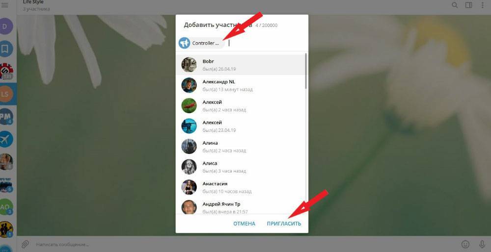 В поиске напишите название бота, например @Controller Bot и кликните на него;