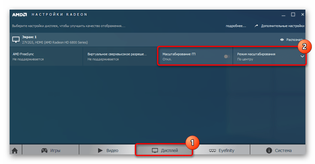 К сожалению, в панели управления AMD находится меньше настроек, однако там тоже есть несколько пунктов, отвечающих за редактирование масштабирования. Проверить и изменить их можно так: