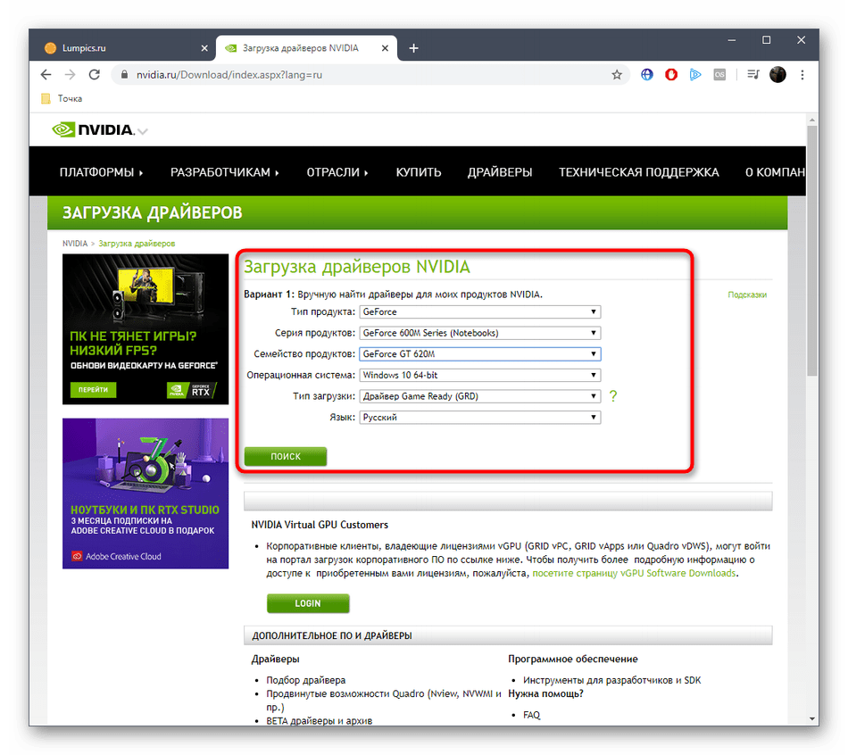 Теперь мы предлагаем затронуть тему инсталляции драйверов для видеокарты, поскольку именно отсутствие данного программного обеспечения чаще всего провоцирует появление растянутого экрана и отсутствие нужных значений разрешения экрана, что в большинстве случаев возникает как раз после переустановки ОС. На нашем сайте имеется отдельный материал, где продемонстрированы универсальные инструкции для обладателей видеокарт от разных производителей. Ознакомьтесь с ним, чтобы узнать, как именно осуществляется правильная инсталляция.