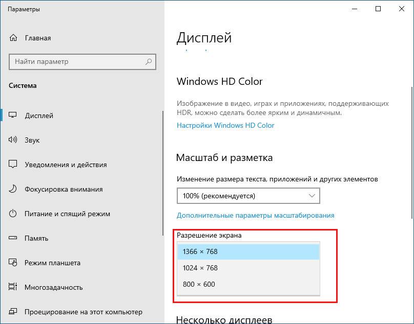 Как вы могли заметить, операционная система Windows 10 позволяет установить самые популярные разрешения экранов, например, 1366х768 пикселей для ноутбуков или 1920×1080 для станционарных компьютеров.