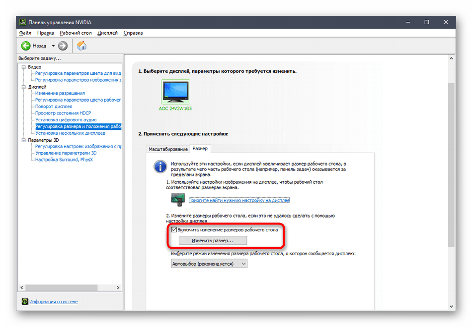 У драйверов видеокарт от компаний AMD и NVIDIA имеются приложения с GUI. Через них осуществляется более детализированное управление графикой. Там присутствуют отдельные меню, позволяющие настроить масштабирование и автоматическое изменение размеров, поэтому мы рекомендуем проверить этот параметр.
