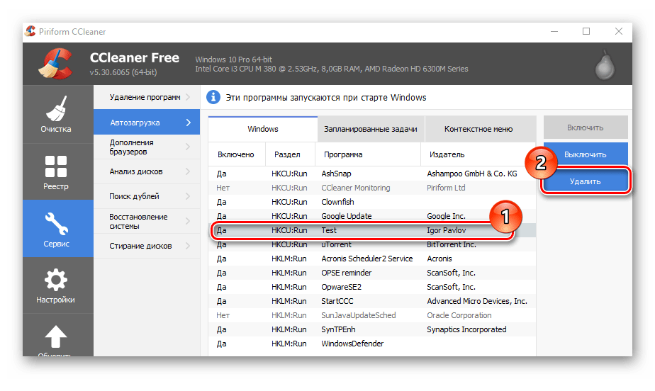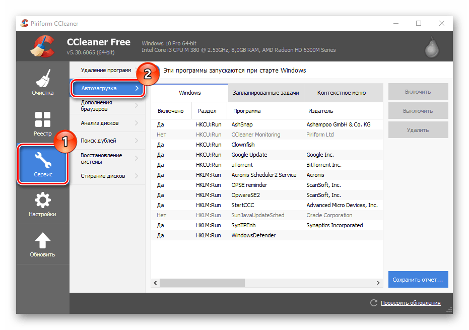 Например, вы можете почистить автозагрузку через CCleaner. Это отличный софт, который удаляет различный мусор и оптимизирует работу компьютера. Итак, чтобы убрать автозапуск программ при включении ноутбука или ПК:
