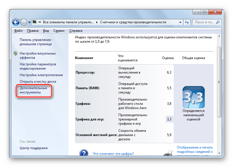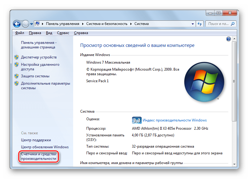 В левой нижней части данного окна щелкните «Счетчики и средства производительности».
