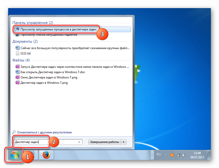Можно также вбить и часть этой фразы, так как результаты выдачи начнут отображаться по ходу ввода. В блоке выдачи «Панель управления» щелкните по пункту «Просмотр запущенных процессов в Диспетчере задач».