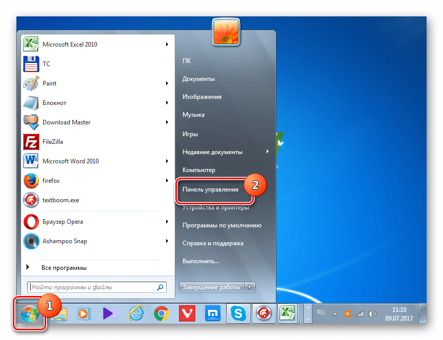 - Кликайте «Пуск». Нажимайте в списке «Панель управления».