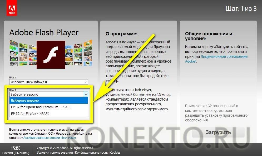 А в нижнем – браузер, для какого должен быть загружен Адобе Флеш Плеер.