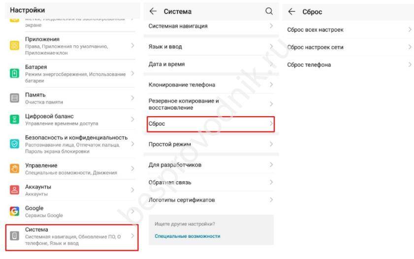 В ситуации, когда нет отпечатка пальца в настройках Honor, а другие шаги не помогают, верните смартфон к заводским настройкам. Сделайте следующее: