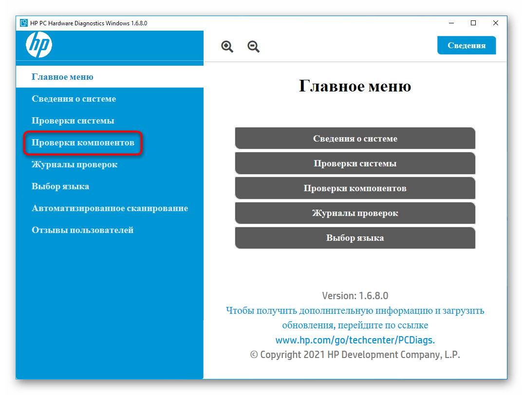 У многих пользователей по умолчанию установлено фирменное программное обеспечение от HP, которое при отсутствии в любой момент можно загрузить с официального сайта. Одна из утилит — HP PC Hardware Diagnostics Windows — проверяет различные комплектующие ноутбука и при обнаружении ошибок выводит информацию о том, как это можно исправить.