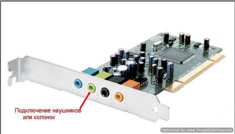 Разъем на звуковой карте компьютера, так же зеленого цвета.