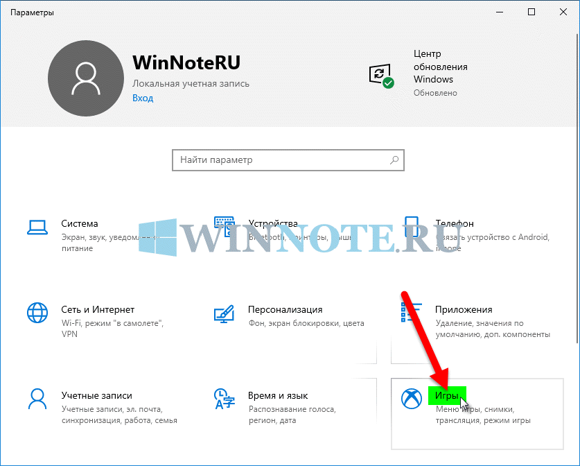 - В интерфейсе «Параметров» перейдите в раздел «Игры».