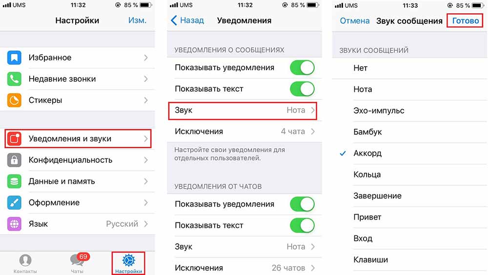 Как сменить звук уведомлений в чатах?