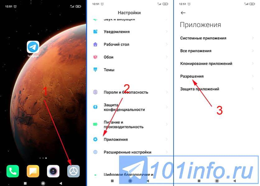 - Переходите к меню «Разрешения»;